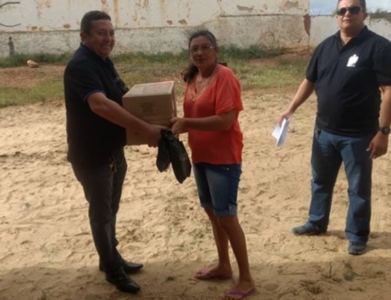 O prefeito Dedé de Zé Paulo (PSB) e a secretária de Ação Social, Cleide Silva fizeram a entrega às famílias beneficiadas, no ginásio de esporte Municipal.
