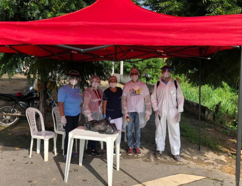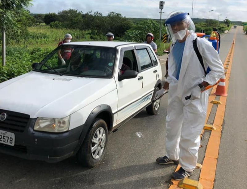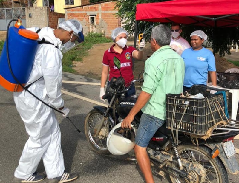 Na manhã dessa sexta-feira (24) a secretaria de saúde junto com a equipe de Endemias armou uma tenda na entrada da cidade para aferir a temperatura dos que chegam e dedetizar os pneus de carros e motos.